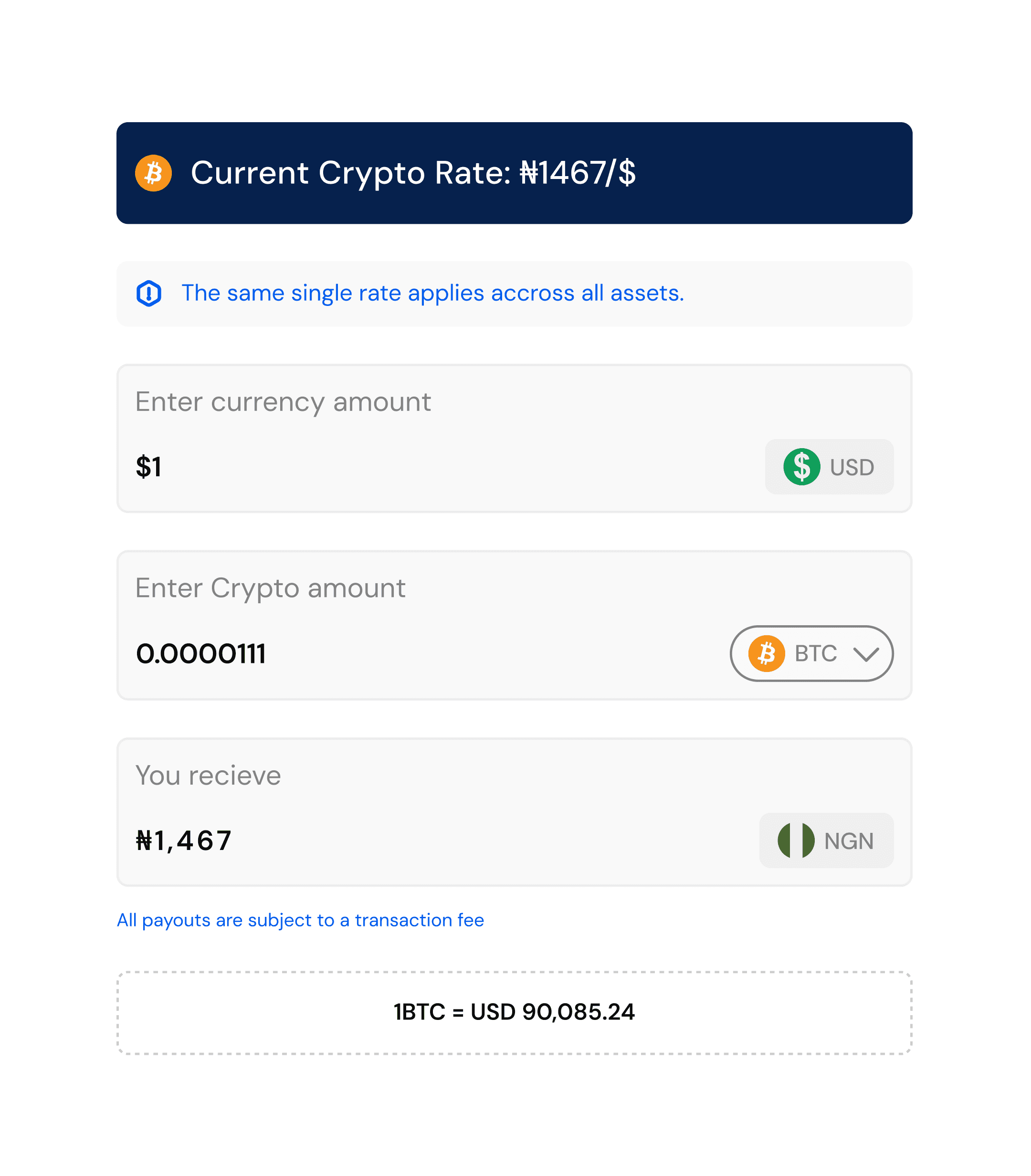 Instant Transactions — Buy or sell crypto in seconds with real-time market pricing.