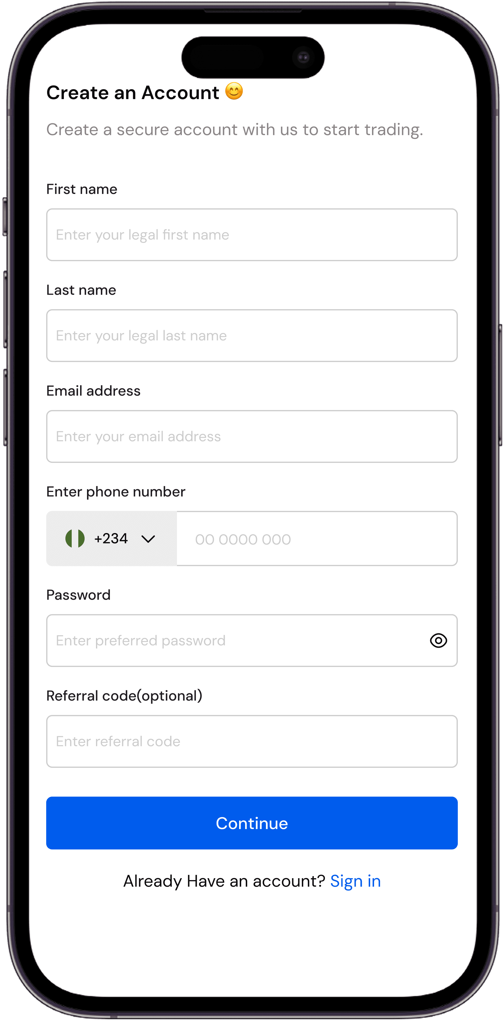 Easily Set-up your account with email and phone number
